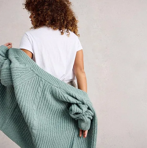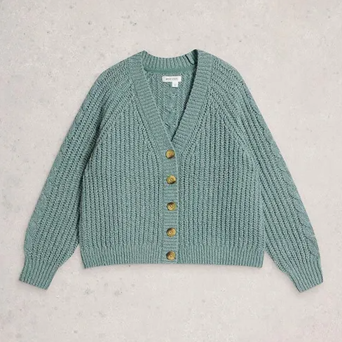 Le cardigan Sally Slub de White Stuff, en vert sombre, est une pièce idéale à porter en déplacement, à enfiler sur vos épaules dès qu'il fait froid. Indispensable en maille, idéal toute l'année, ce cardigan offre une chaleur optimale grâce à sa composition épaisse. Il est doté de manches longues à poignets côtelés, d'une encolure en V et d'une fermeture boutonnée sur le devant. Ses finitions en grosse maille torsadée le long des bras en font un incontournable de votre garde-robe.