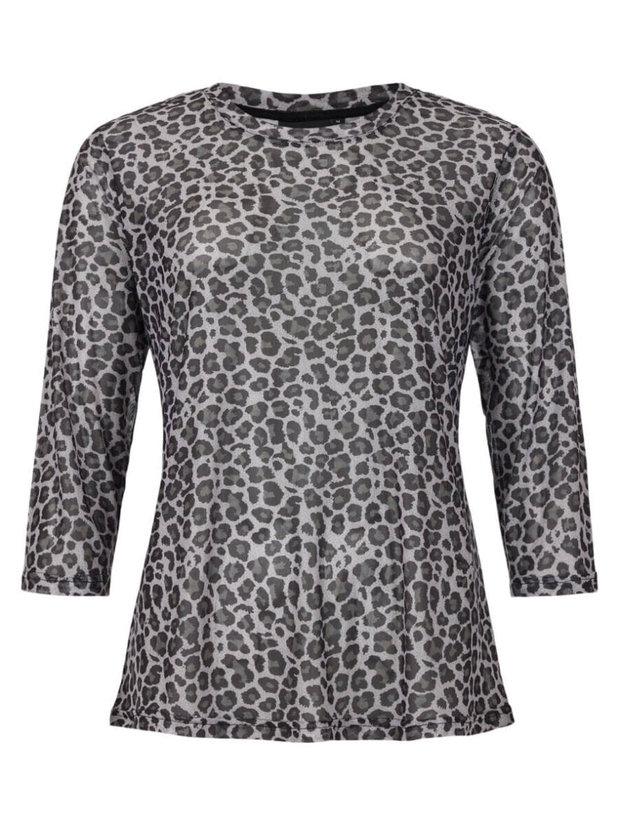 Chemisier en maille Brandtex, orné d'un magnifique imprimé léopard dans des tons gris.