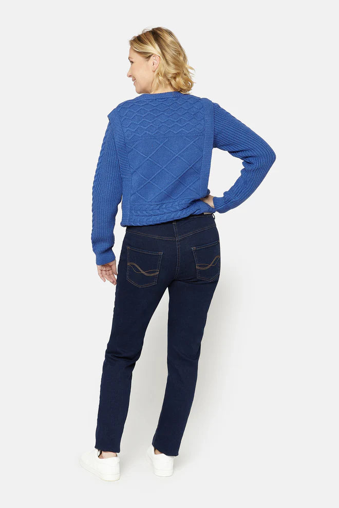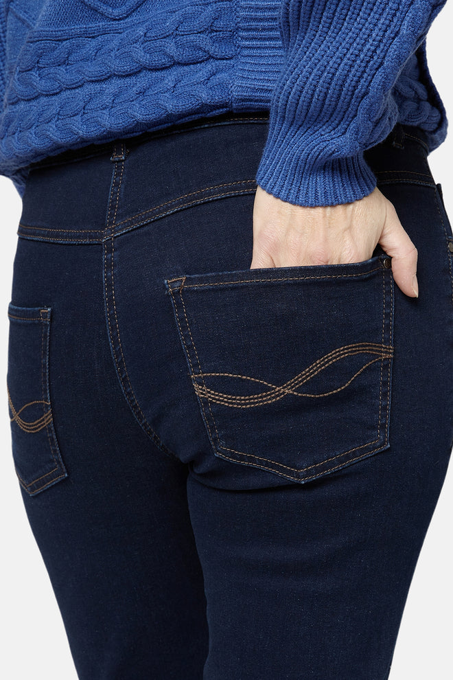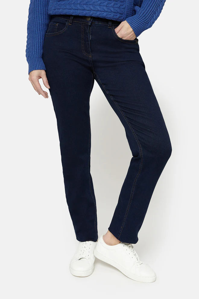 Jean Brandtex classique avec jambe droite, taille mi-haute, 4 poches et fermeture zippée et boutonnée. Confectionné en denim extensible, ce jean est confortable à porter. Portez-le avec un t-shirt ou un chemisier.