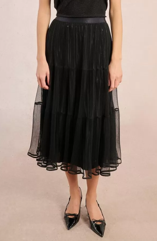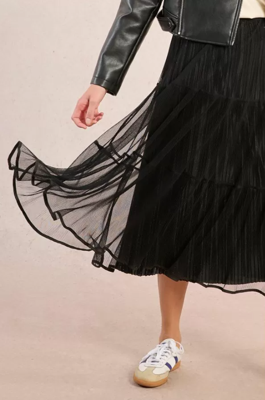 -Longue jupe en tulle -Taille haute élastiquée -Multi-volants sur toute la longueur de jupe -Doublée