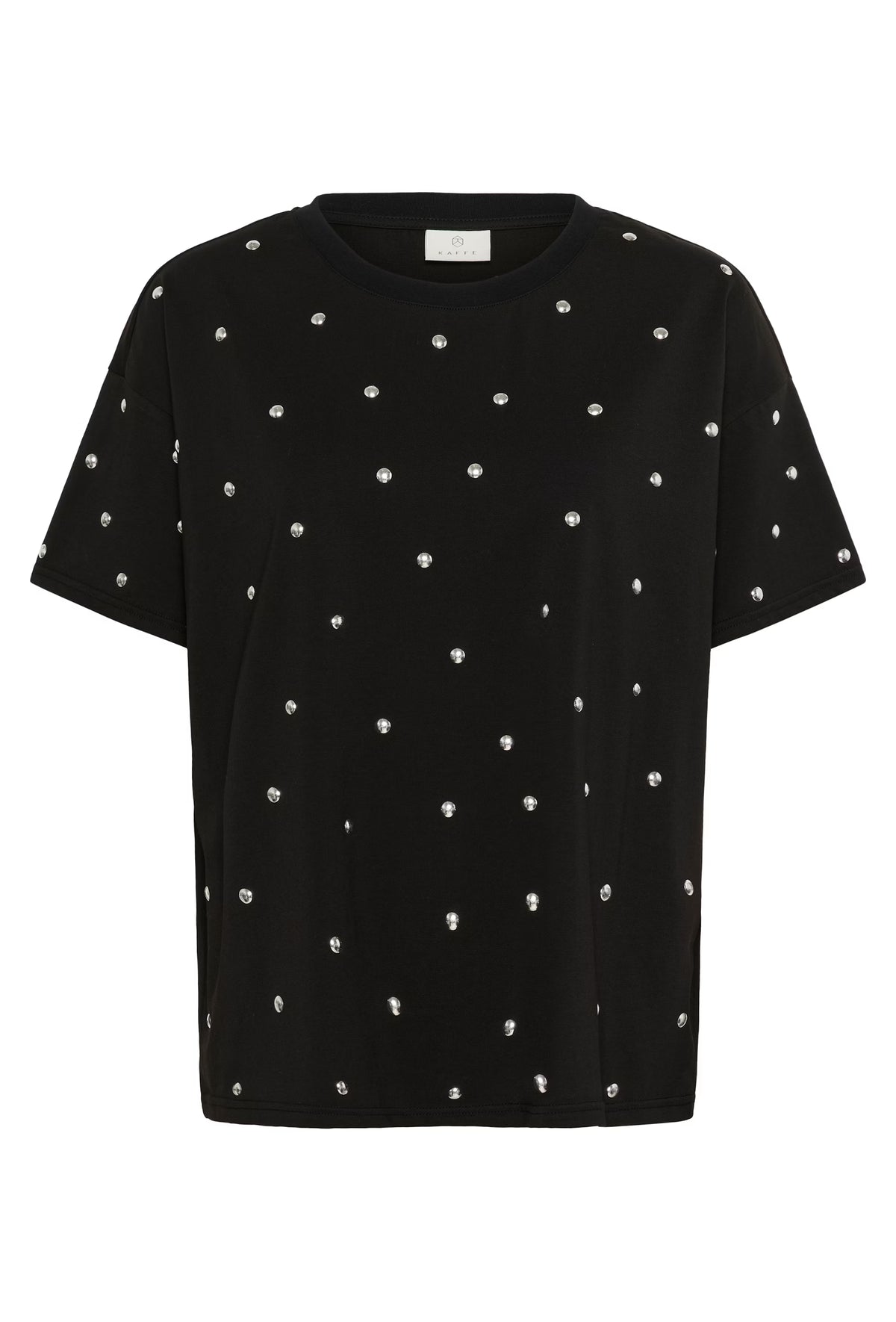 Ce t-shirt à coupe décontractée, manches courtes et encolure ronde classique se distingue par ses détails ornés. Confortable, il convient à divers styles et occasions.