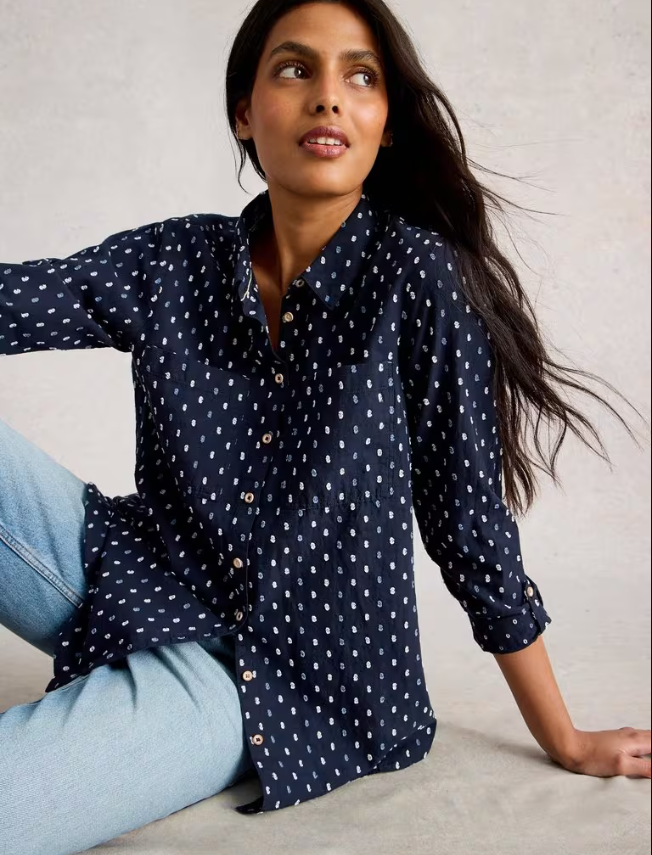 Votre nouveau chouchou. Pour de nombreuses raisons. Comme son tissu 100 % coton biologique, son délicat motif répété et son harmonie parfaite avec votre jean préféré.