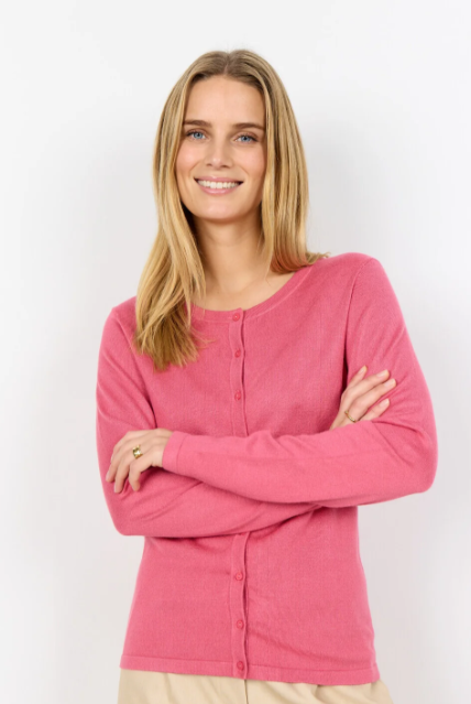Magnifique cardigan Soya Concept couleur Rapture Rose. Design sophistiqué et confort absolu pour un look enchanteur. Printemps 2026.