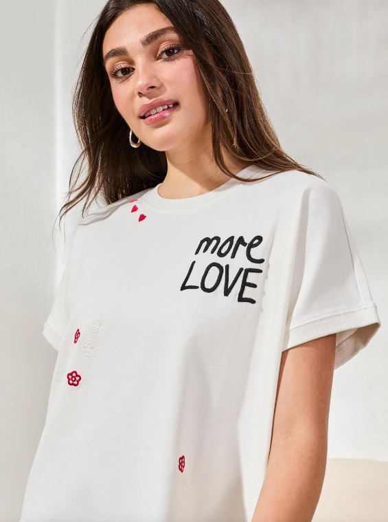 Tribal | Haut brodé à col rond et manches Dolman - Printemps 2026 - white