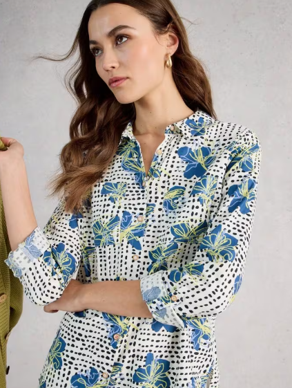 Chemise Sophie en coton biologique White Stuff collection Printemps 2026. Tissu écologique et confortable pour un style décontracté élégant.