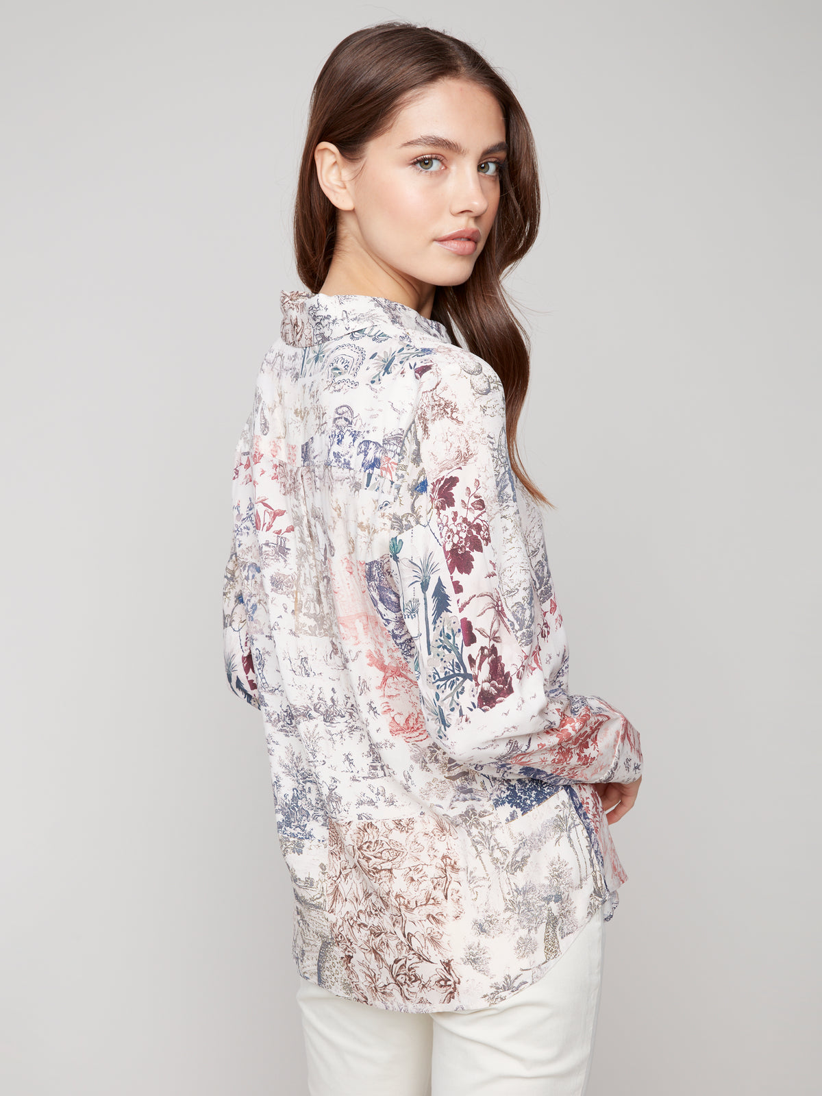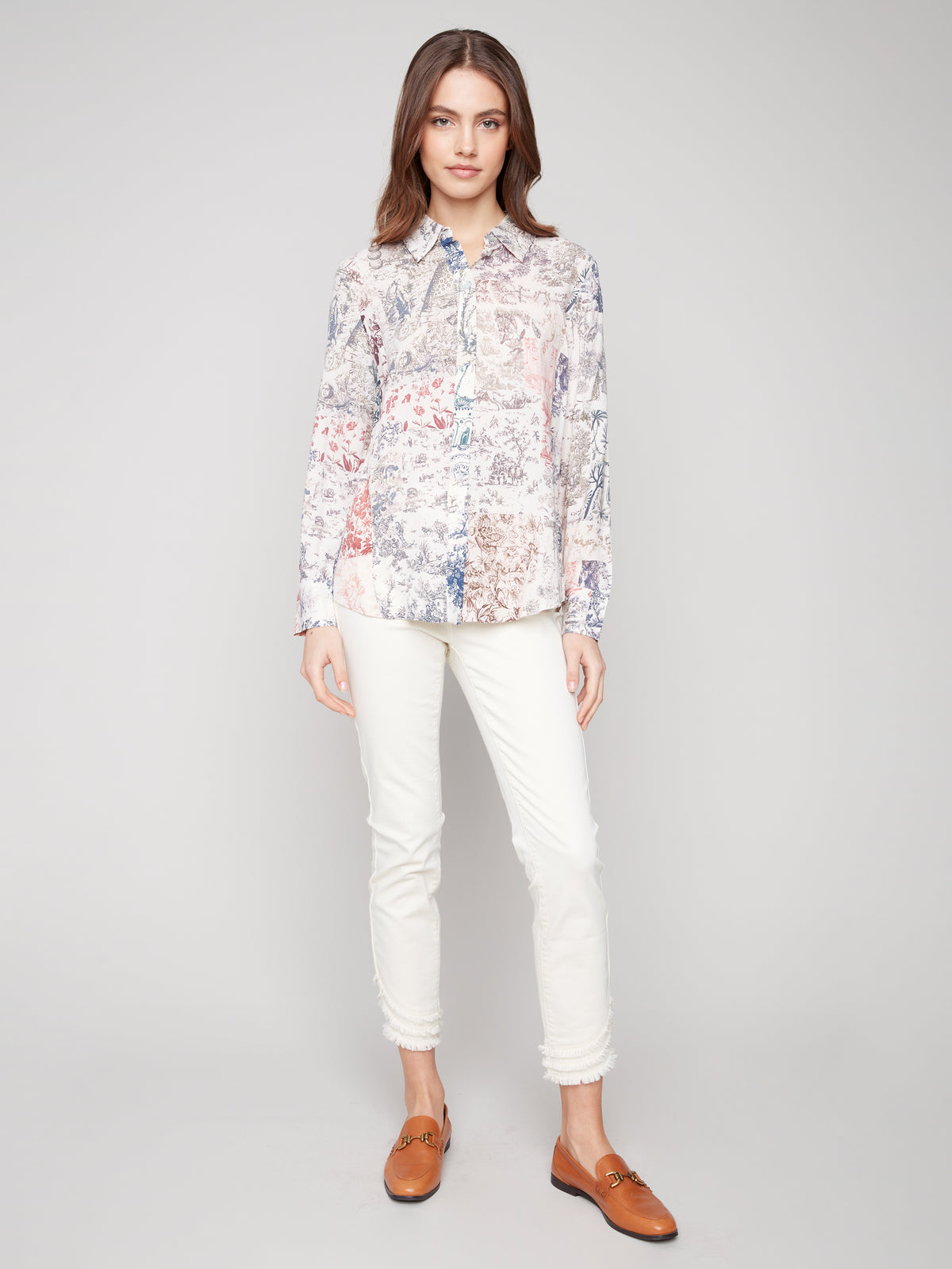 Rafraîchissez votre garde-robe d’automne avec cette chemise imprimée à manches longues et boutonnée, parfaite pour ajouter une touche de couleur et de style à toutes vos tenues. Sa coupe classique et son motif Jacobéen en font une pièce idéale, aussi bien pour le travail que pour les moments de détente. Confectionnée dans un tissu léger, elle se porte facilement tout au long de la journée. Associez-la à un jean pour un look décontracté, ou à une jupe pour une soirée plus habillée. Une chemise incontournable pour rehausser votre style sans effort.