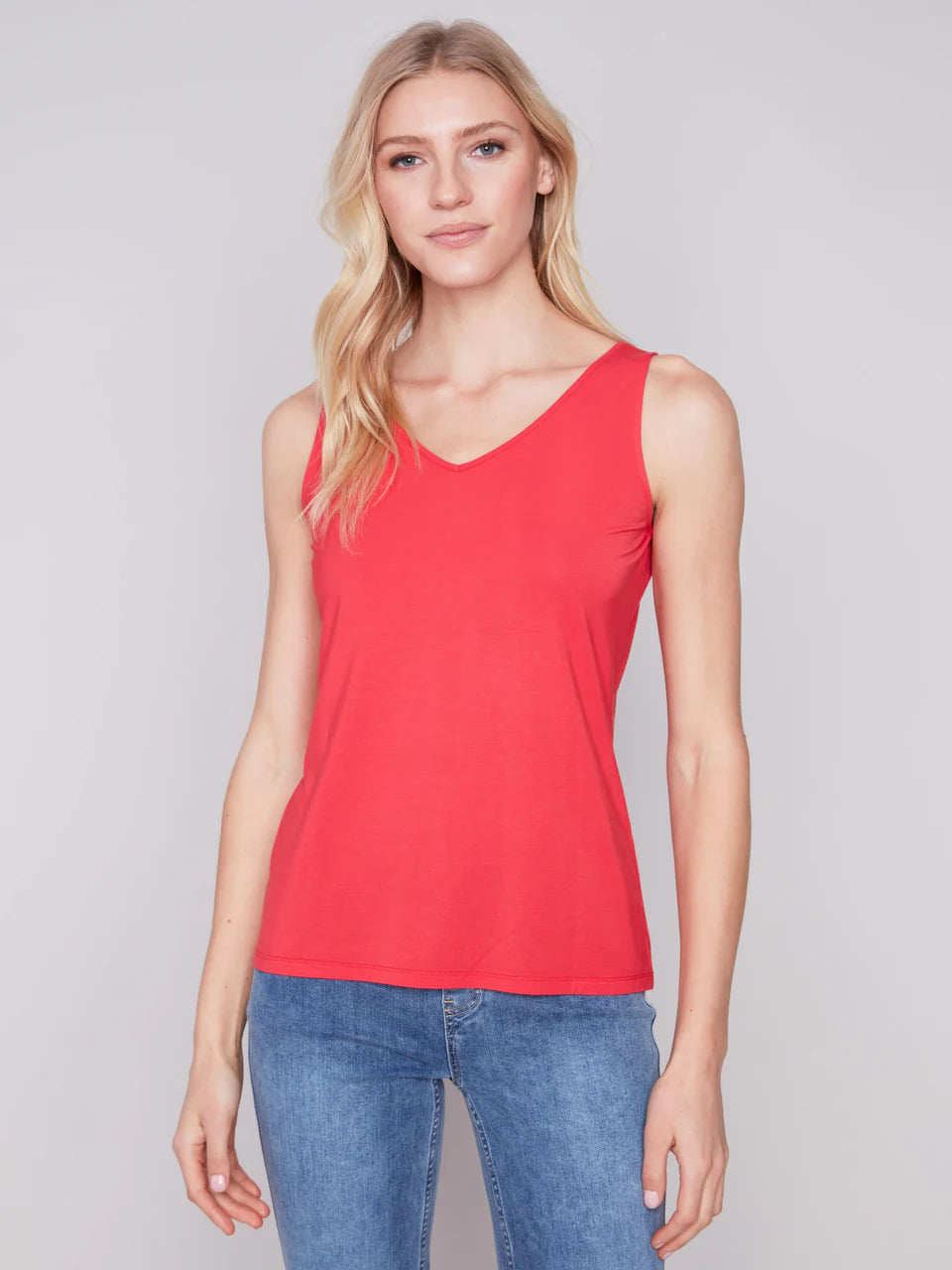 Faite de la cellulose du bambou, vous aimerez la texture satinée et douce de cette camisole pour femmes. C'est le débardeur parfait pour superposer et il est facile à porter.