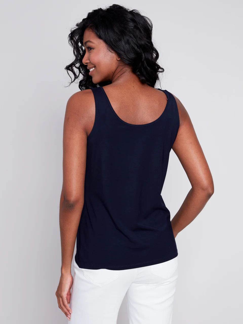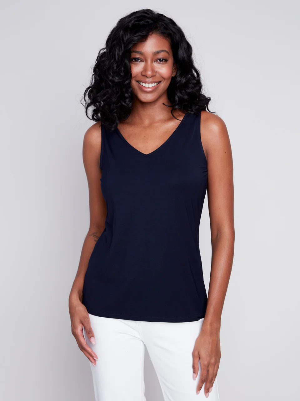 Nouveau jour, nouveau haut! Disponible dans toutes les couleurs neutres indispensables. Plongez dans le style et le confort avec cette camisole bleu marin.