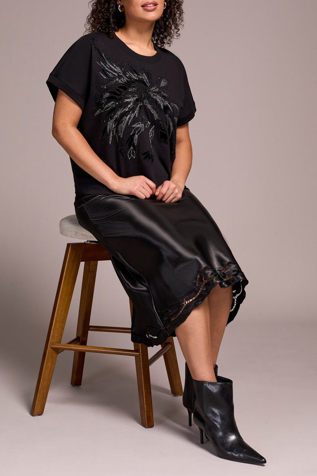 Tribal Chandail imprimé velours et perles noires